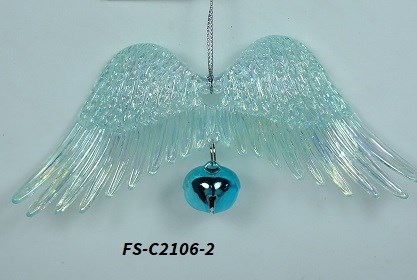 Acrylic plated blue angel wing w/bell ornament