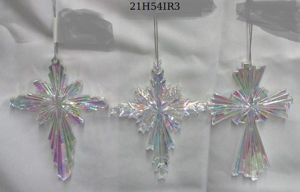 Acrylic iridescent Cross ornament set/3 styles