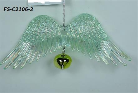 Acrylic plated green angel wing w/bell ornament