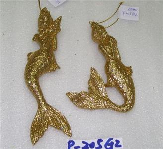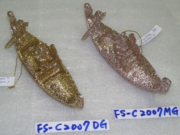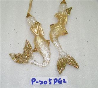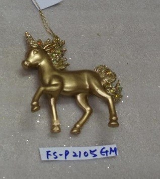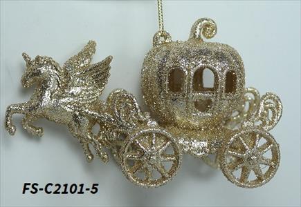 Acrylic Lt. gold glitter horse-drawn carriage ornament