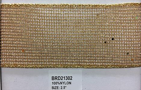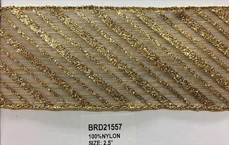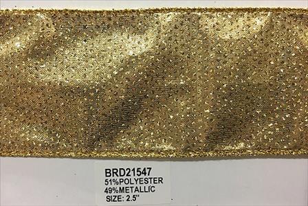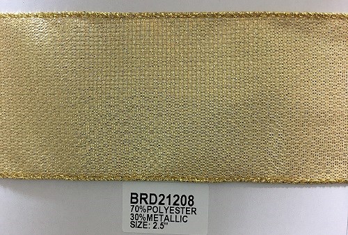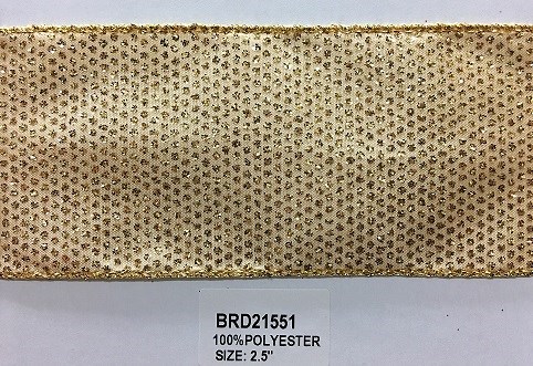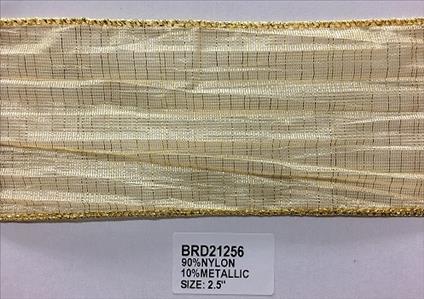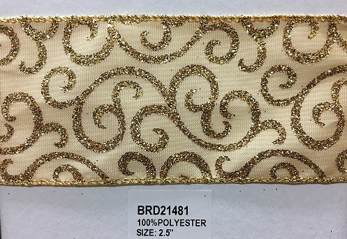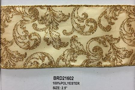 2.5"W Fabric cream with gold glitter leaf ribbon