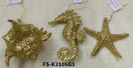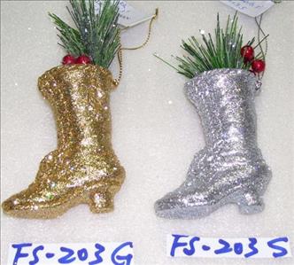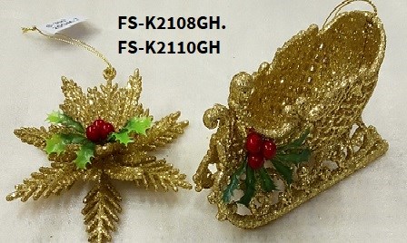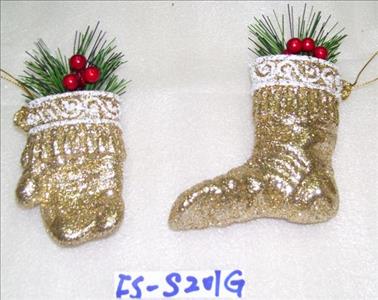 Acrylic gold glitter berries ornament set/2 (boot,glove)