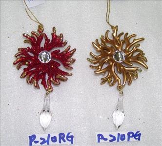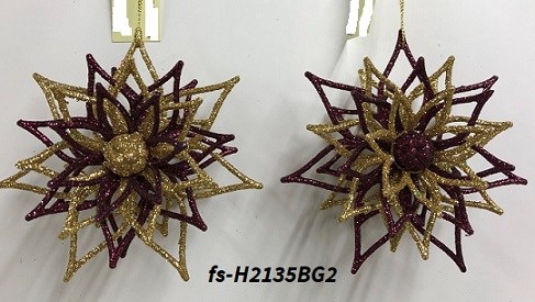 Acrylic gold/burgundy bud snowflake ornament set/2