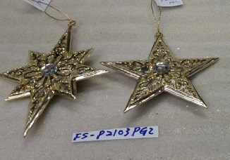 Acrylic gold glitter star snowflakes ornament 2 sizes