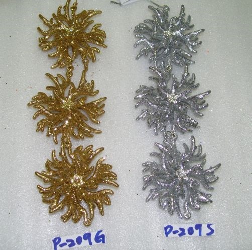 Acrylic glitter string of 3 snowflakes ornament 2 colors