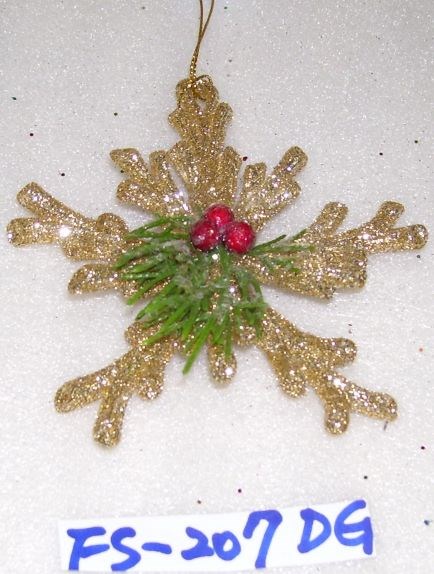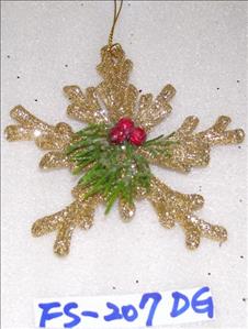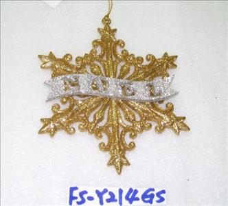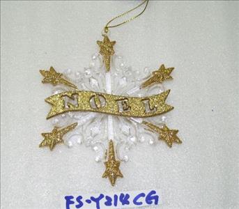 Acrylic gold glitter w/Noel" letter snowflake ornament