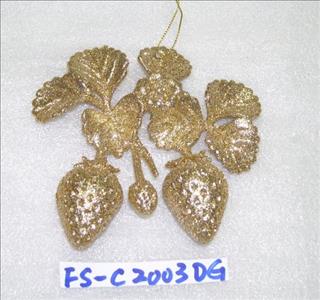 Acrylic gold glitter hollow holly fruits ornament set/2