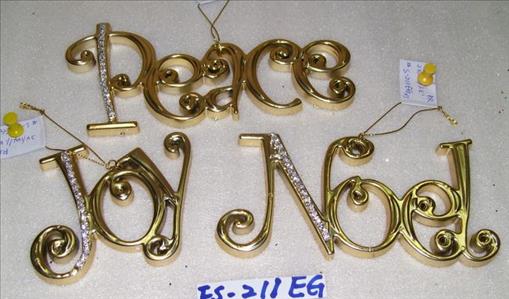 Acrylic plated gold lettering ornament set/3 (Joy,Noel,Peace)