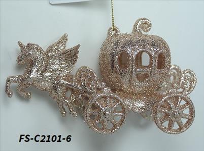 Acrylic rose gold glitter horse-drawn carriage ornament