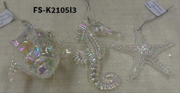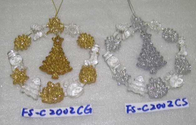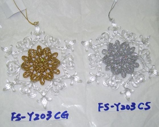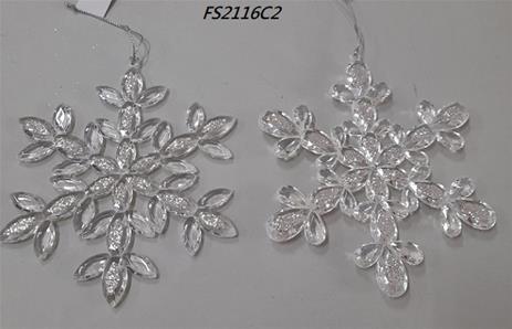 Acrylic clear with glitter snowflakes ornament set/2 colors