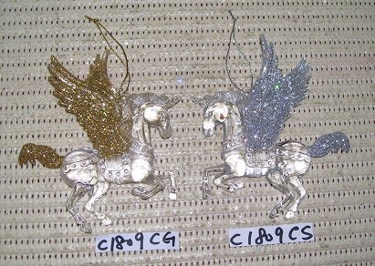 Acrylic clear w/glitter Horse ornament set/2 styles