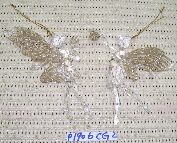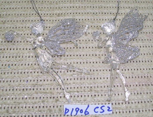 Acrylic clear w/glitter fairy ornament set/ 2 styles