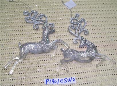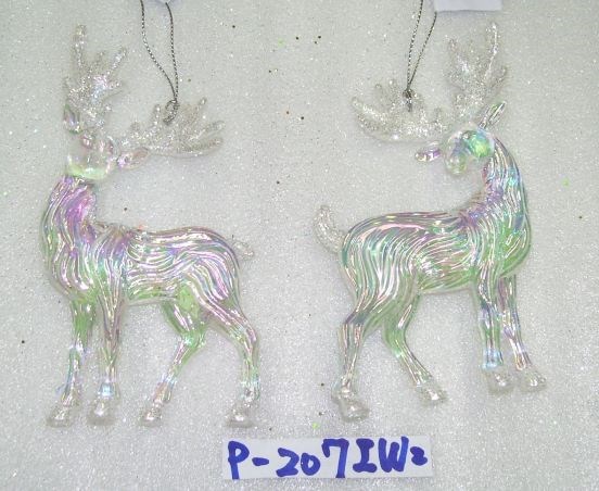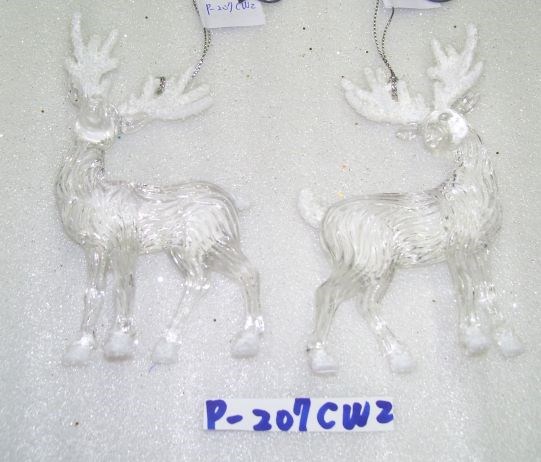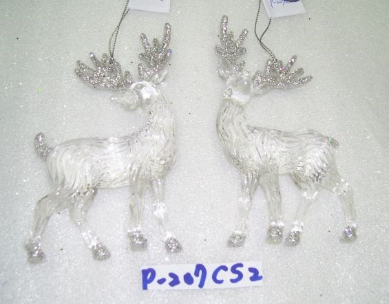Acrylic clear w/glitter deer ornament set/ 2 styles