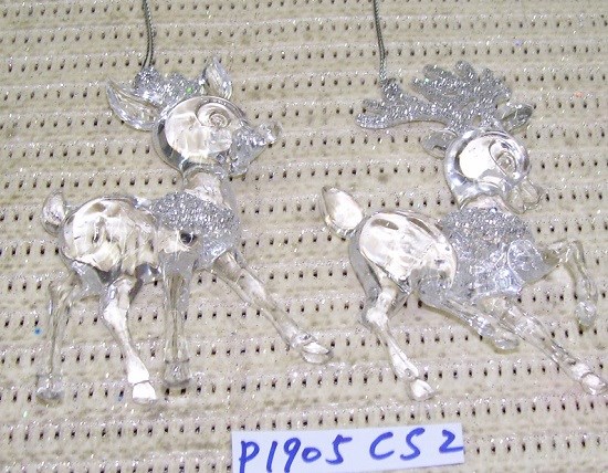 Acrylic clear w/plated Deer ornament set/ 2 styles