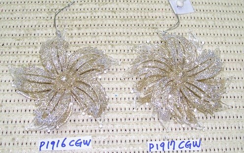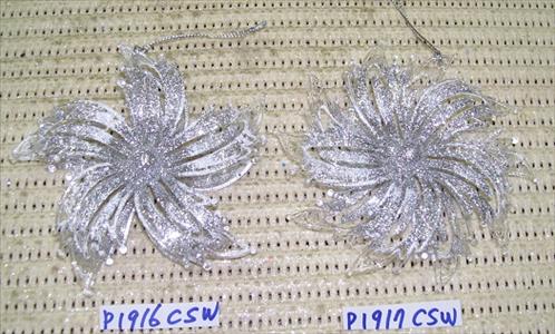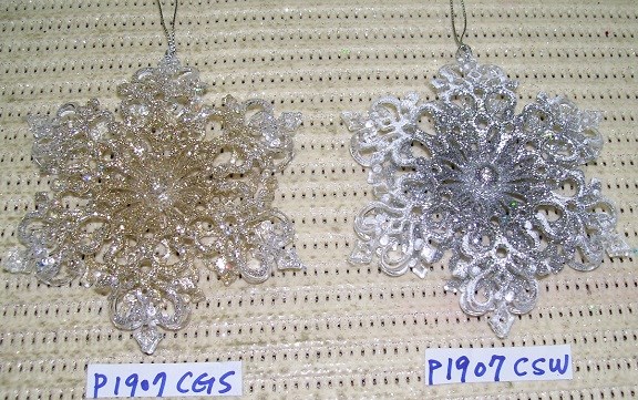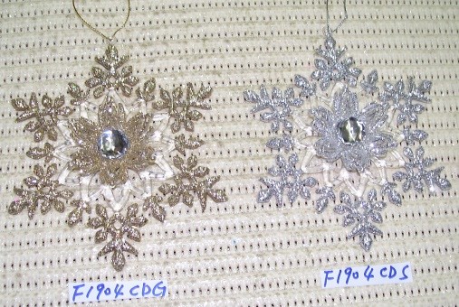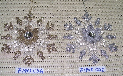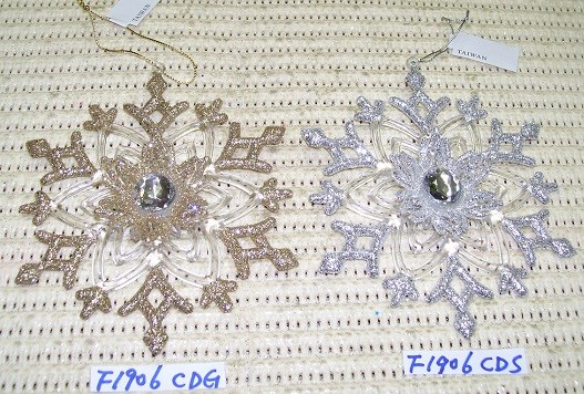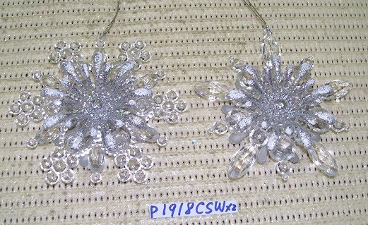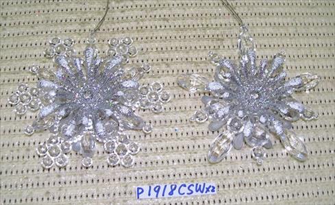 Acrylic clear w/glitter pearl snowflakes ornament 2 colors