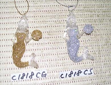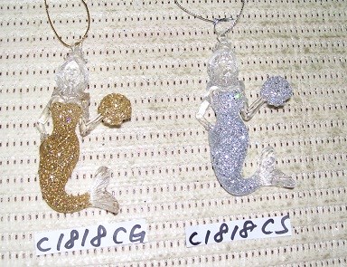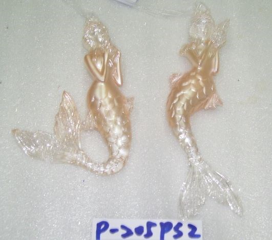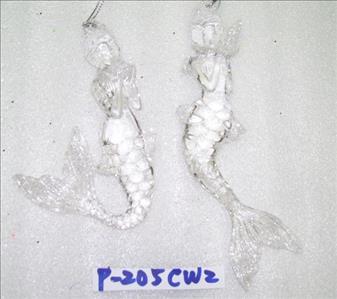 Acrylic clear w/glitter Mermaid ornament set/2 colors