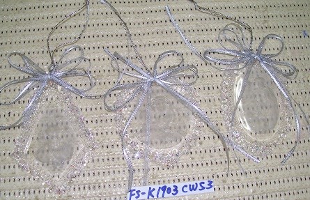 Acrylic clear w/glitter bow plaque ornament set/3 styles