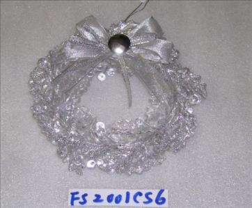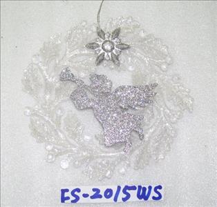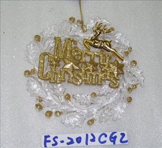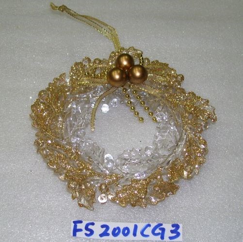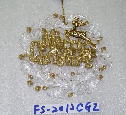 Acrylic clear w/glitter lettering wreath ornament 2 colors