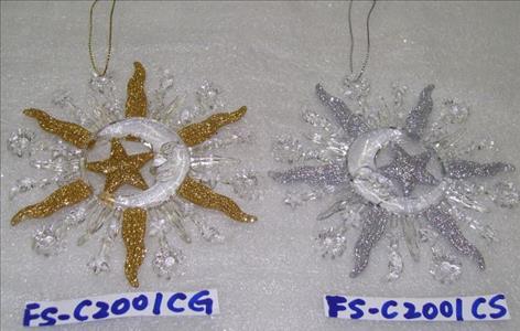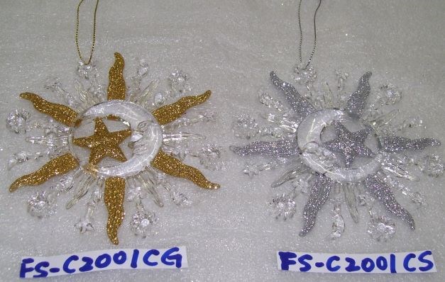 Acrylic clear w/glitter sun/moon/star ornament 2 colors