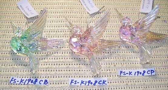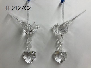 Acrylic clear robin bird w/heart ornament set/2 styles