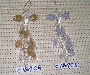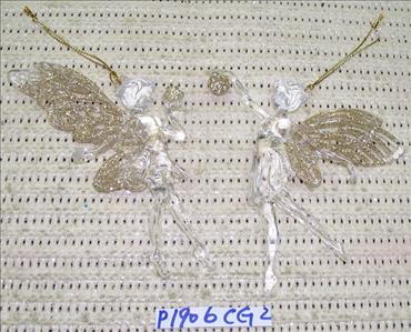 Acrylic clear w/glitter Fairy lady ornament set/2 colors