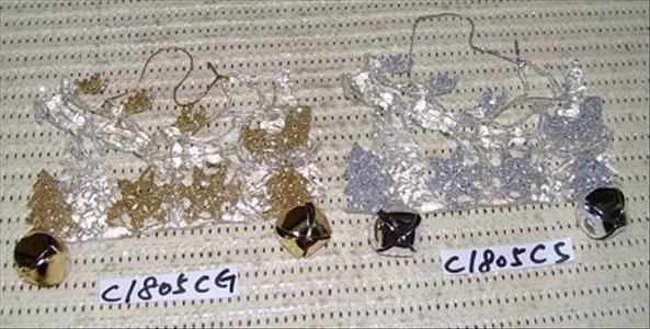 Acrylic clear w/glitter bell sleigh ornament set/2 colors