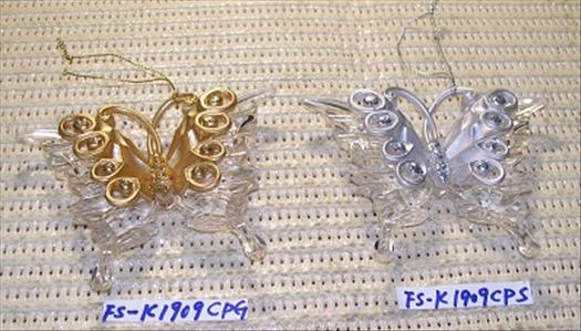 Acrylic clear w/plated color butterfly ornament 2 colors