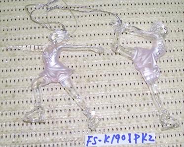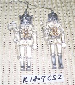 Acrylic clear w/glitter nutcracker ornament set/2 styles