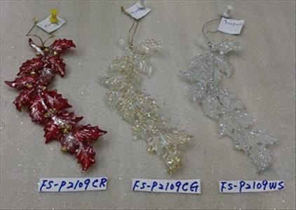 Acrylic frosted glitter holly leaf ornament 3 colors