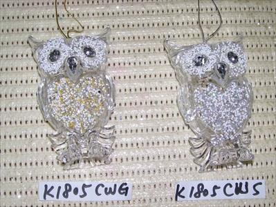 Acrylic clear w/glitter Owl ornament set/2 colors