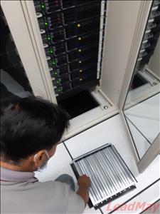 現場機櫃下方的高架地板都有配合出線而開孔