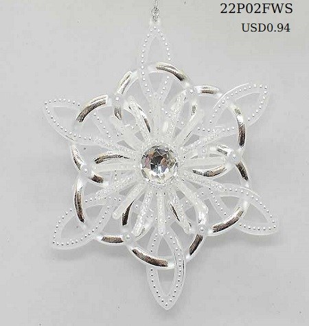 6"H Plastic white/silver snowflake ornament