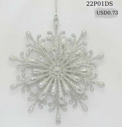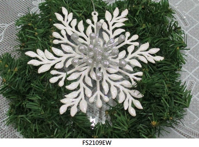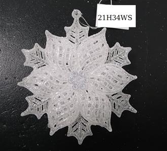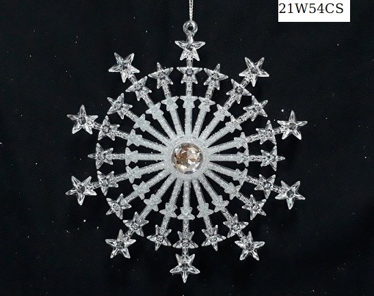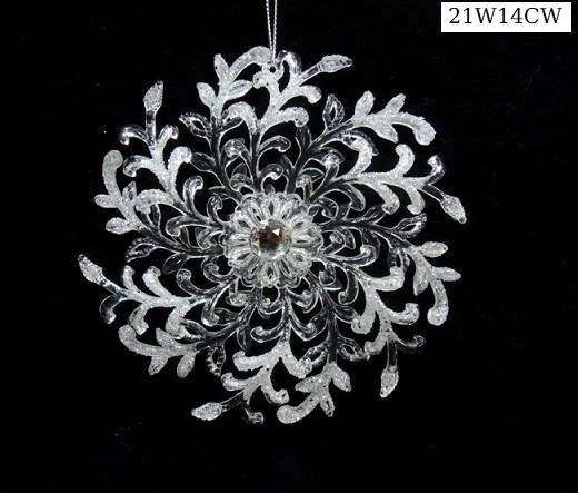 Acrylic flash white/silver glitter snowflake ornament