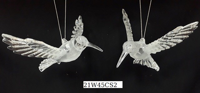 Acrylic frosted Humming bird ornament set/2