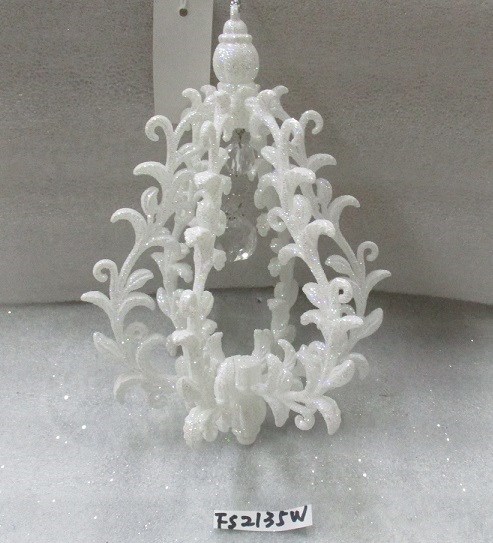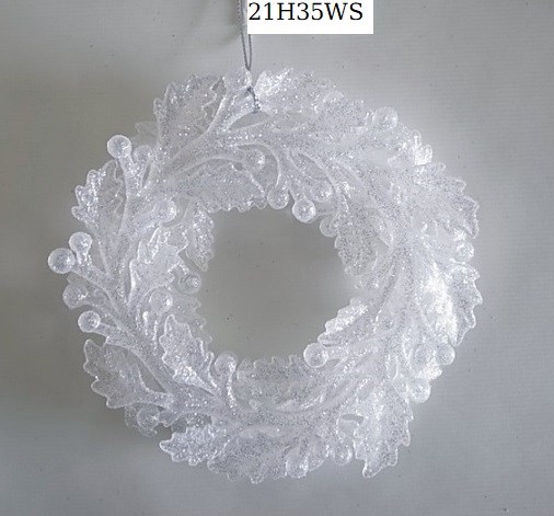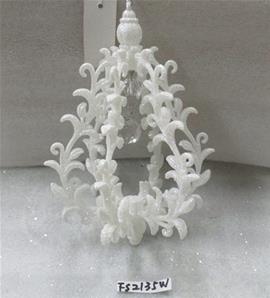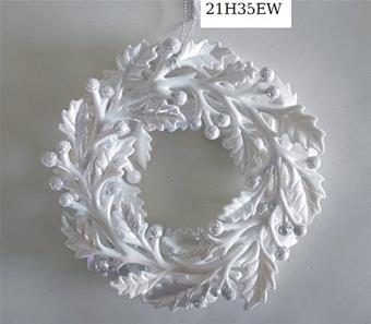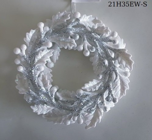 5"DIA. Plastic white w/silver glitter wreath ornament