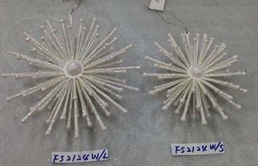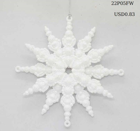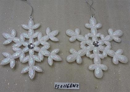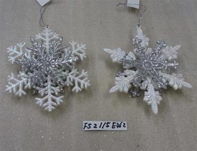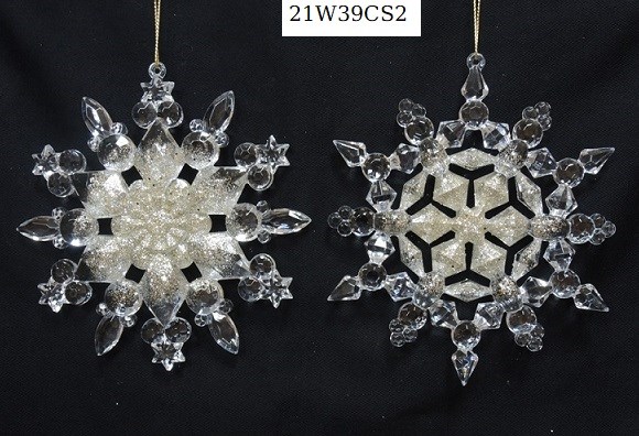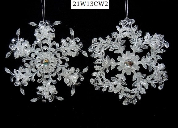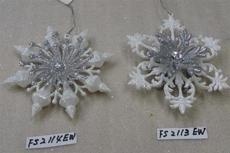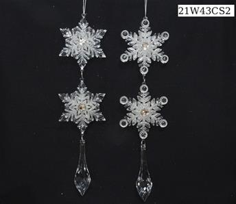 6"H Plastic white glitter snowflake ornaments set/2 styles