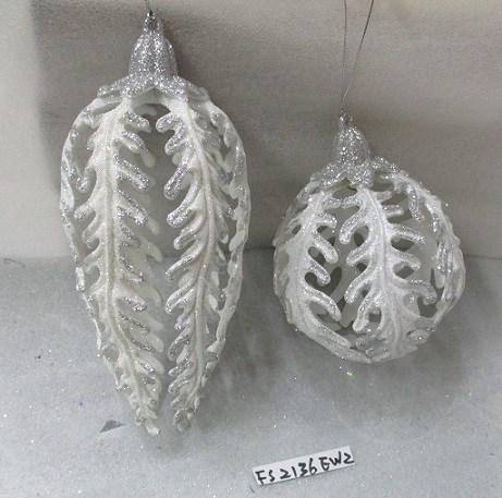 Plastic white/silver glitter hollow leaf ball ornament set/2 styles