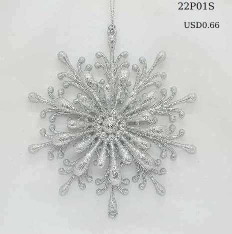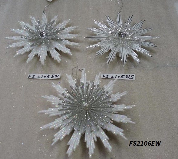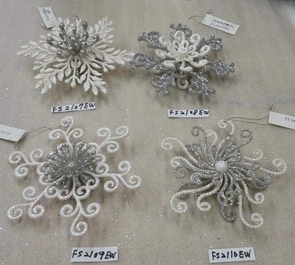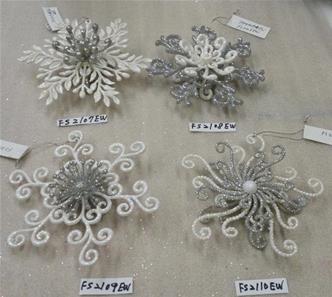 6"H Plastic white/silver glitter snowflakes ornaments 3 finishes