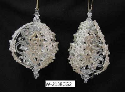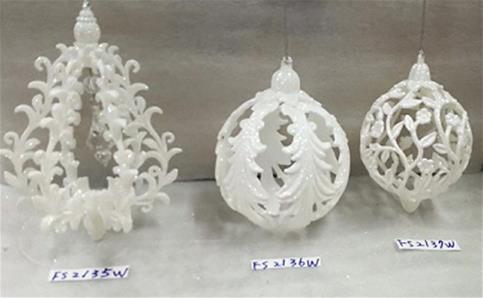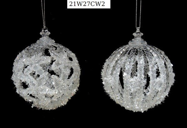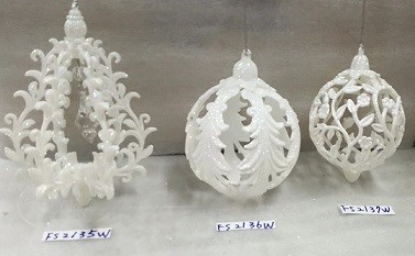 Acrylic white glitter filigree ball ornament 3 styles (cone,round x2)