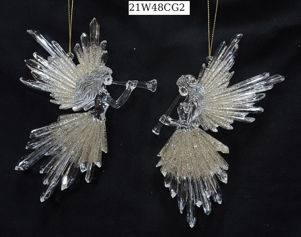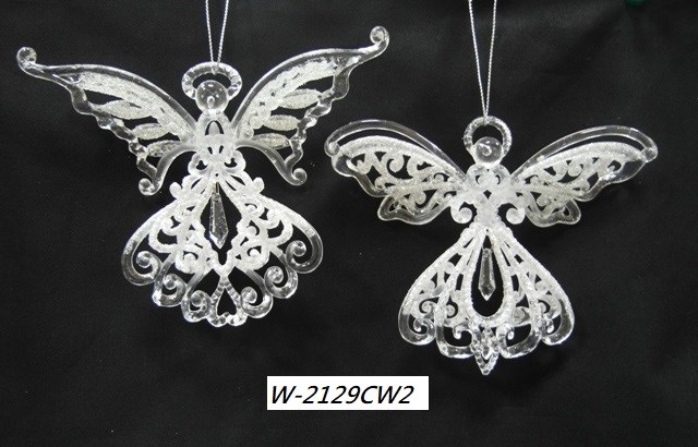 Acrylic clear in white glitter filigree angel ornament set/2 styles