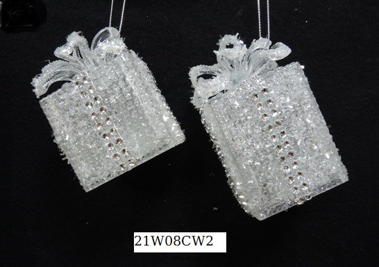 Acrylic frosted gift box ornament set/2