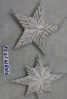 4"/5"H Plastic silver/white glitter star ornaments set/2 styles