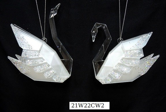 Acrylic frosted twin Swan ornament set/2