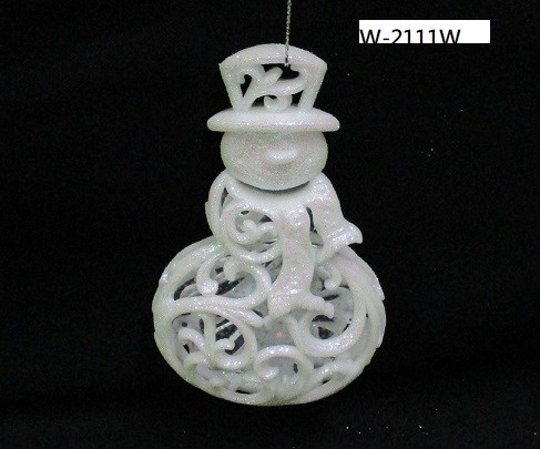 5"H Plastic white filigree snowman ornament