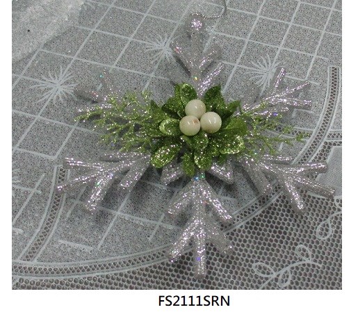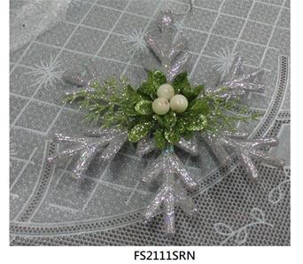 6.5"H Acrylic silver glitter berries snowflake ornament