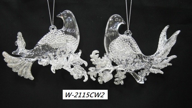 Acrylic clear in white glitter flower bird ornament set/2 styles