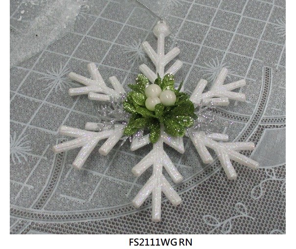 6.5"H Acrylic white glitter berries snowflake ornament