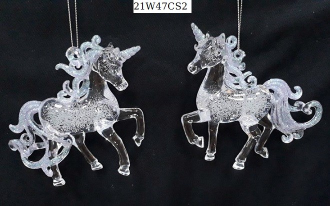 Acrylic clear in white glitter running horse ornament set/2 styles