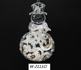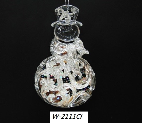 Acrylic clear in iridescent glitter filigree snowman ornament