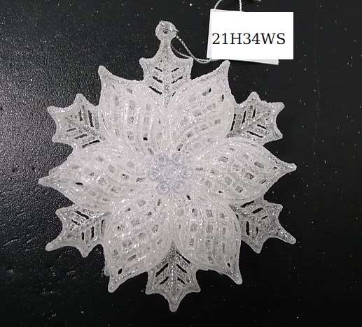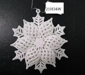 5.5"H Plastic white/silver glitter flower snowflake ornament